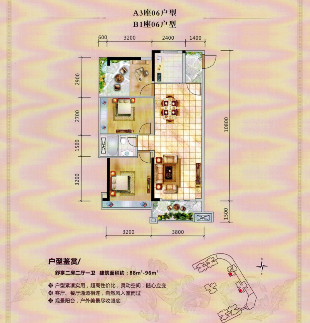 百福城2室2厅1厨1卫 54.6万起